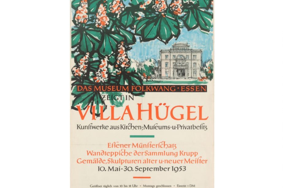 1954 wurde der gemeinnützige Villa Hügel e.V. gegründet. Er hatte den Satzungszweck, die Villa Hügel zu einem „über die örtlichen Grenzen von Essen hinausgehenden Kulturzentrum des Ruhrgebiets zu gestalten“ und wurde bis 1985 zum Veranstalter der berühmt gewordenen Kunstausstellungen in der Villa Hügel.